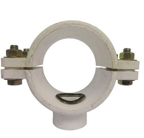- Abrazadera en Bronce o PVC. La abrazadera es un elemento de la toma domiciliaria que se acopla a la tubería de la red de distribución haciendo la sujeción mecánica de la misma en tres puntos equidistantes garantizando el perfecto sellado y hermeticidad de la instalación.