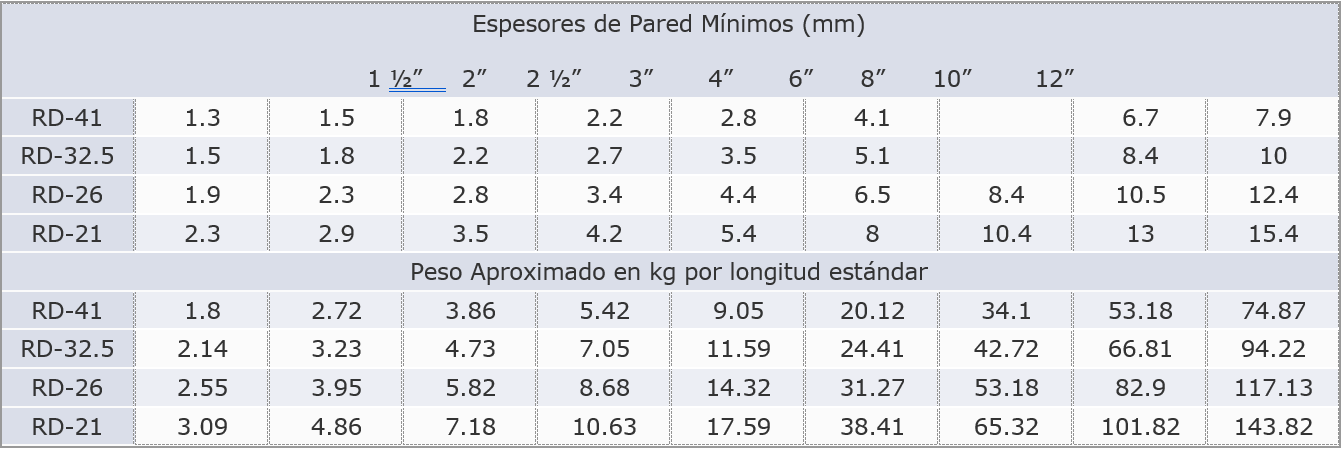 Los tubos y conexiones hidráulicos serie inglesa están fabricados con resina de PVC (Policloruro de Vinilo) y diseñados para el abastecimiento de agua a presión para consumo humano y usos generales. Los tubos hidráulicos cuentan con una amplia gama de diámetros (1 1/2” a 14”), espesores de pared (RD 26, 32.5 y 41) y terminados con campana y anillo.